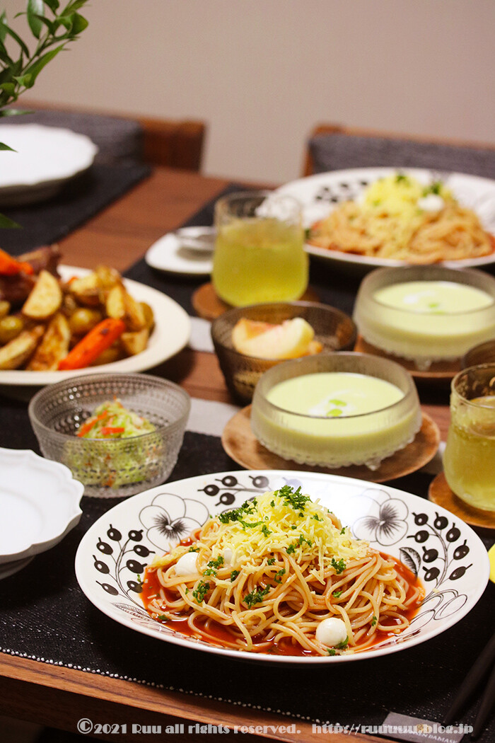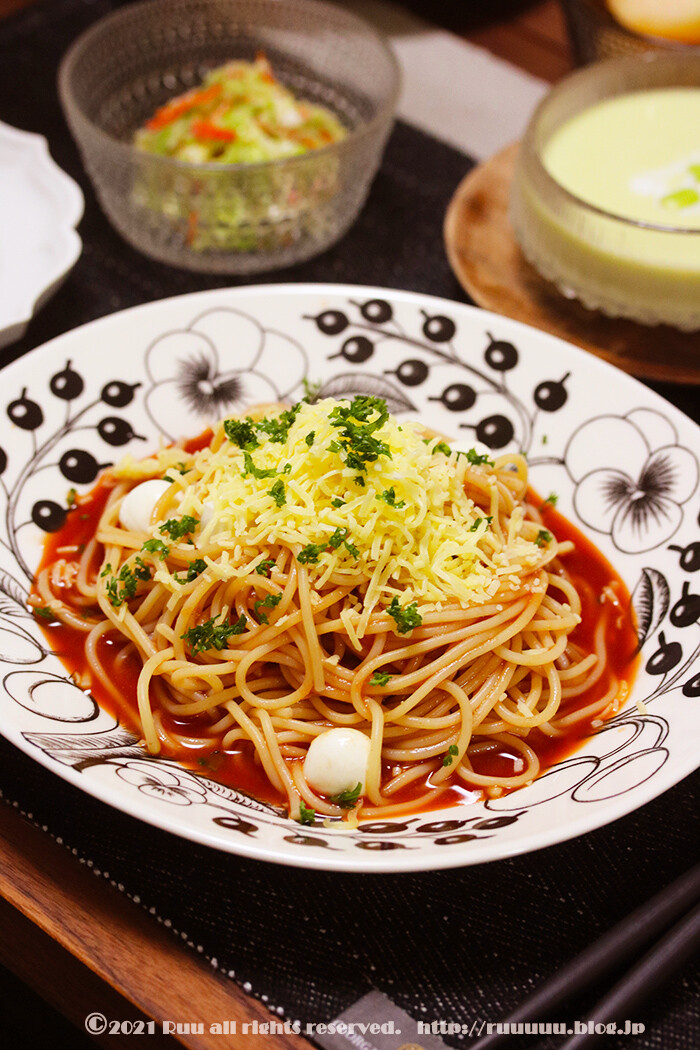 ということで、昨日の晩ご飯は冷製パスタ。