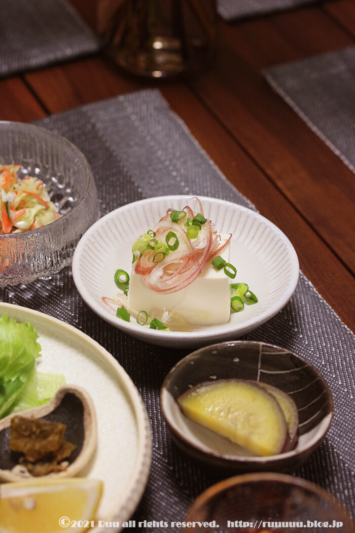 豆腐を切るのと、まだIHが使えた頃の作り置きからさつまいもの甘露煮を出すのを頑張り、