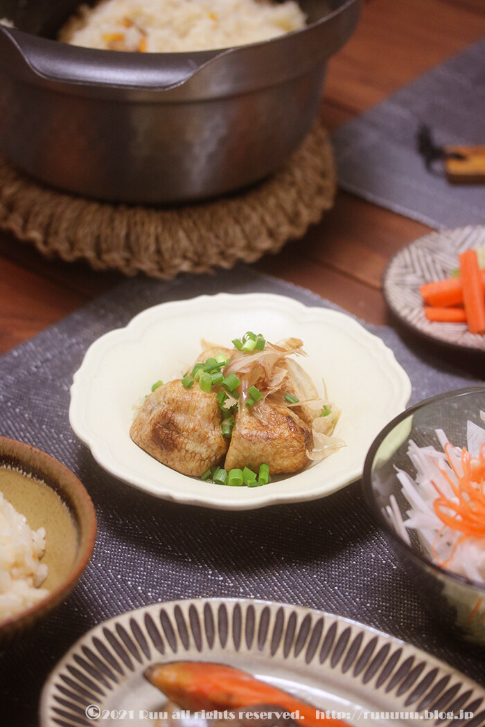 素揚げした里芋にかつおぶしとめんつゆをかけた揚げだし里芋。