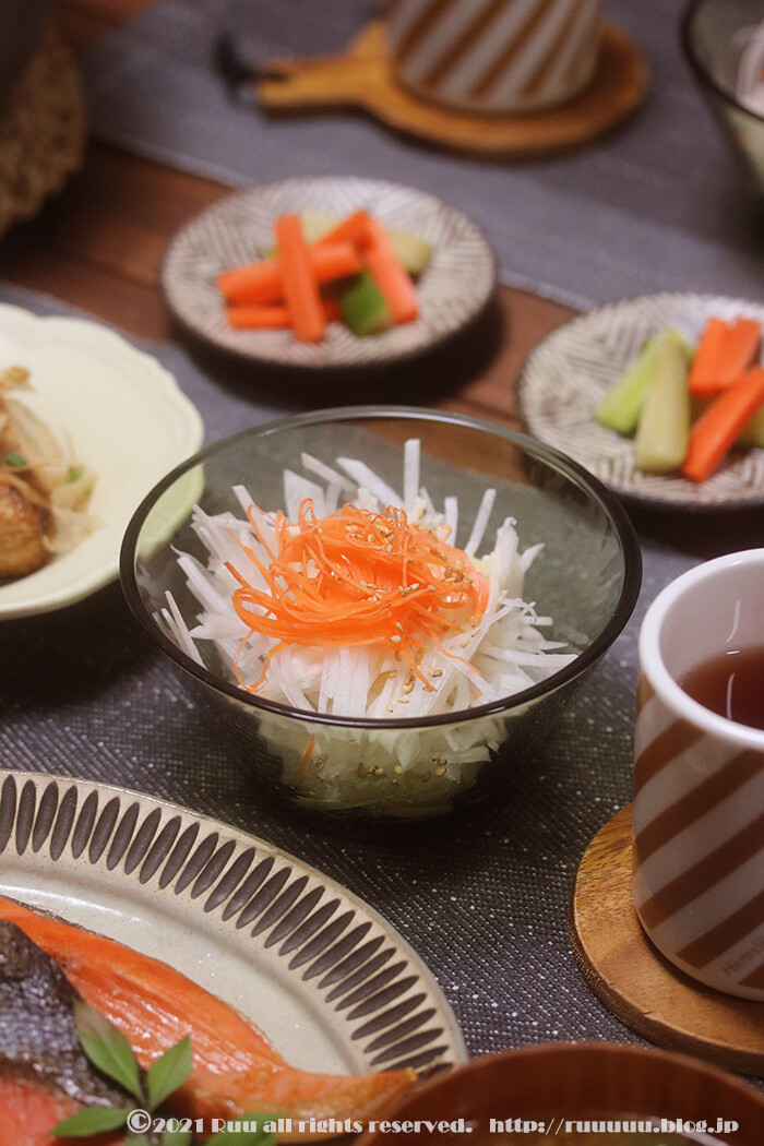たっぷり大根があるので、真ん中部分を使ってサラダに。
