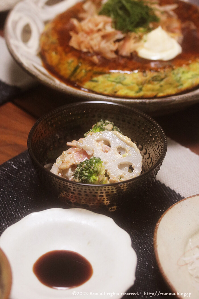 そして、れんこんとブロッコリーのサラダも食べて、