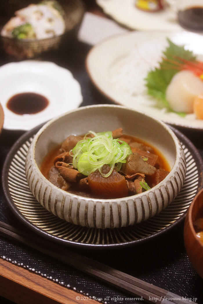 メインは、前日からコトコトコトコト煮込み続けたもつ煮込み。