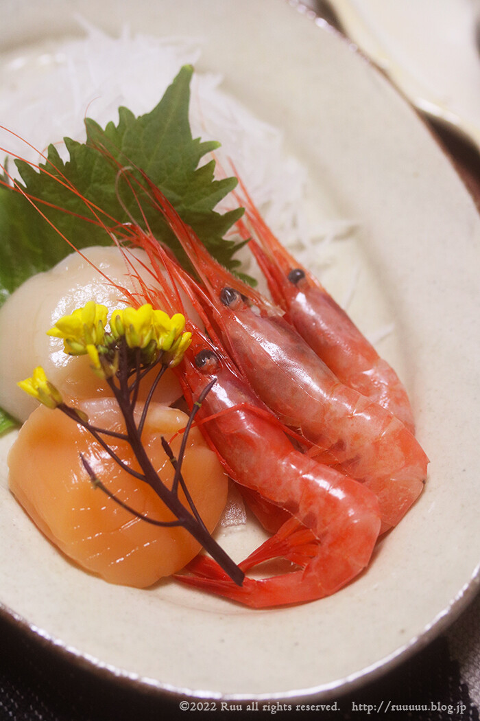 甘海老とほたてのお刺身