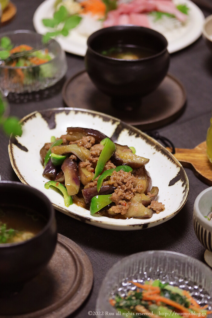 茄子と挽き肉の味噌炒めや、