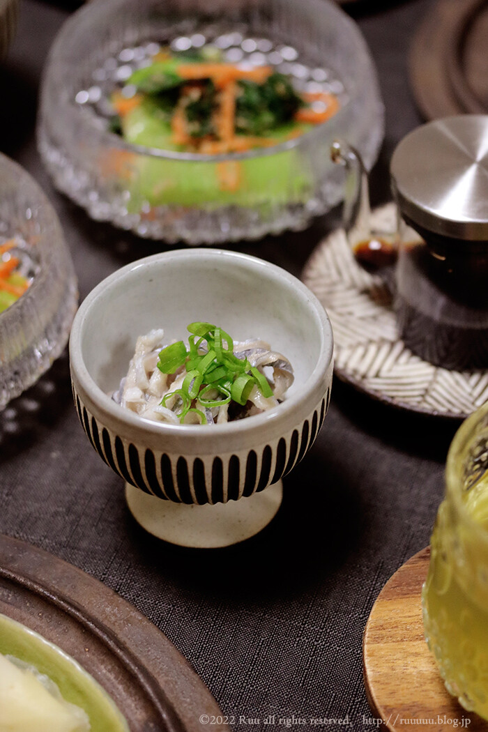 細めに刻んで、おろしポン酢をかけたもの。