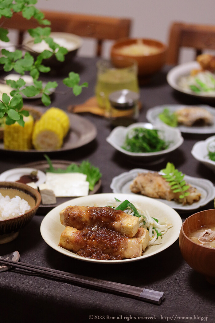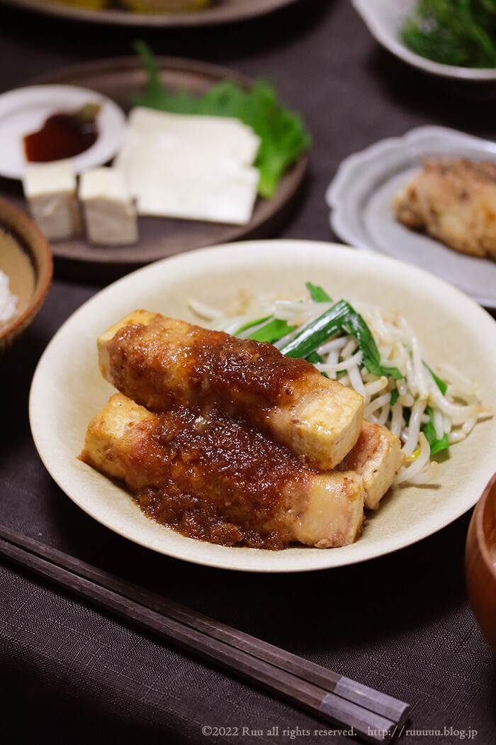 ほんではちょっと前の晩ご飯より、豆腐の肉巻き。