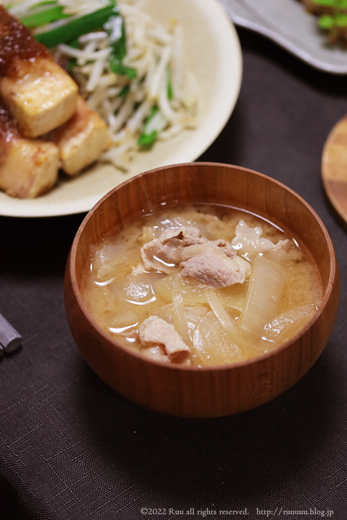 たっぷりの玉ねぎと共に豚汁に。