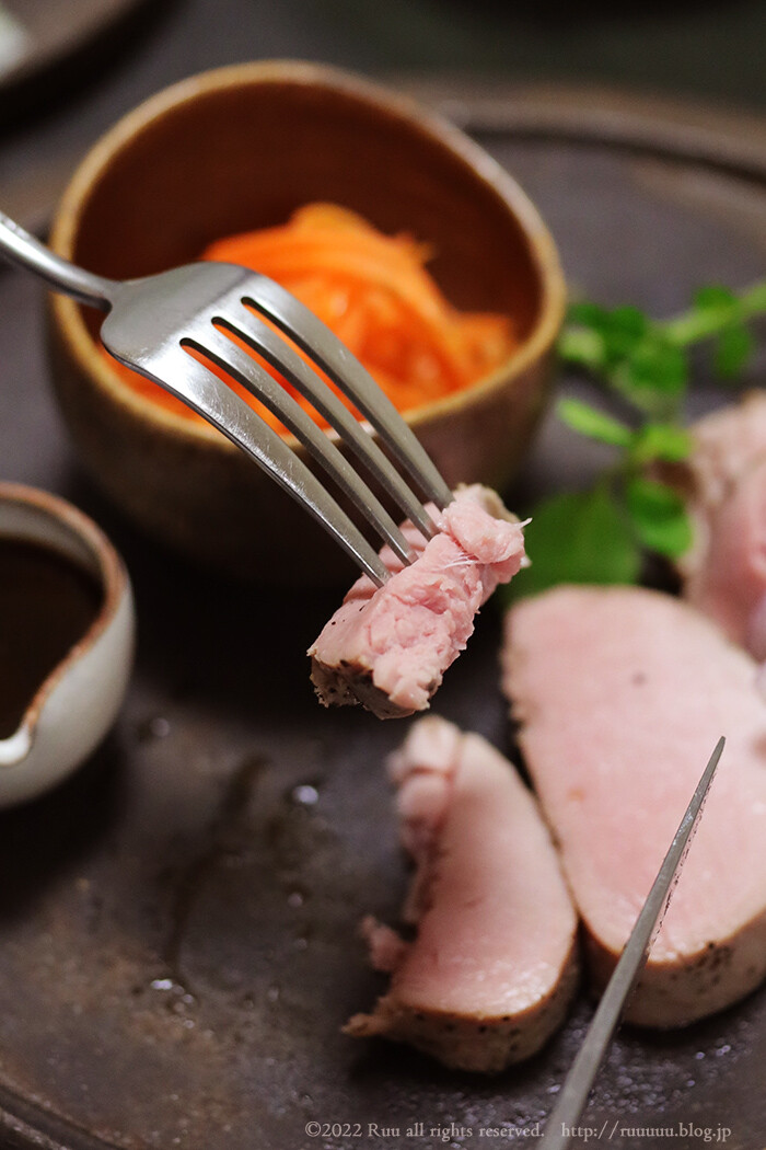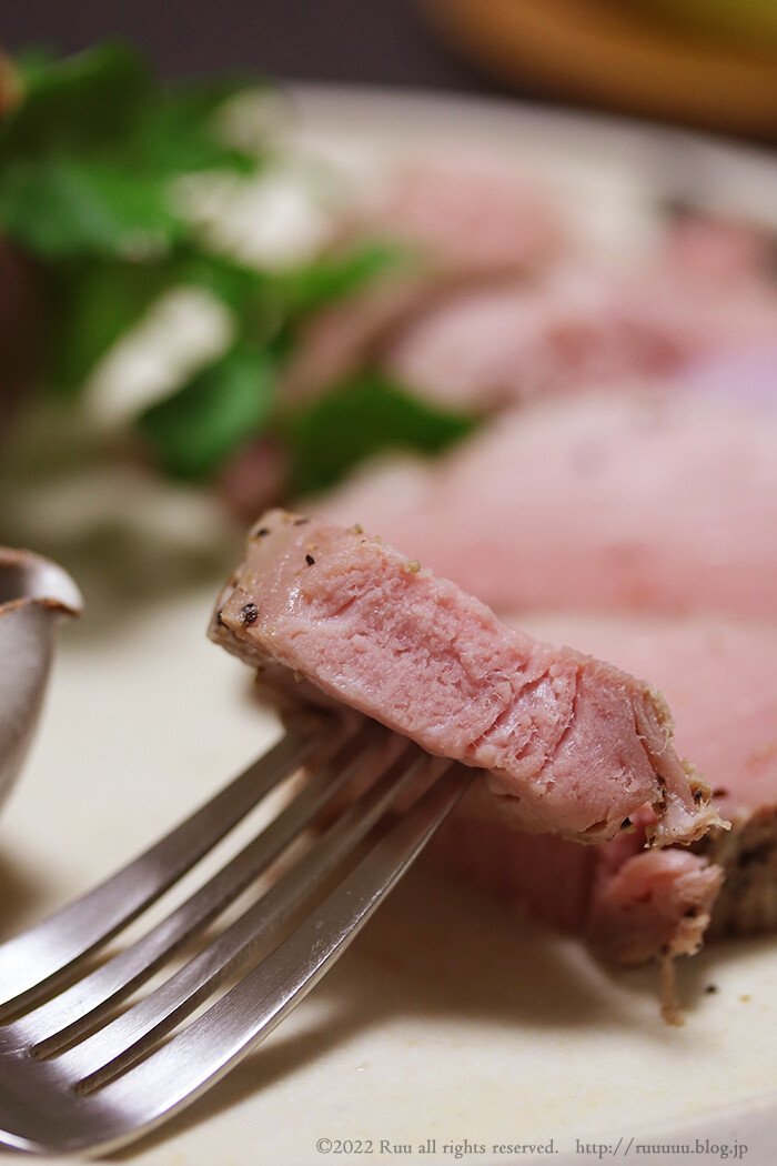 ローストポークはキンッキンに冷やしちゃうとお肉が締まって固くなっちゃうのでね、