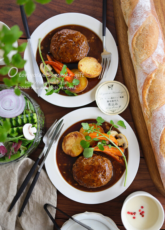 ノワドココさんの黒毛和牛肉100%の煮込みハンバ―グ!