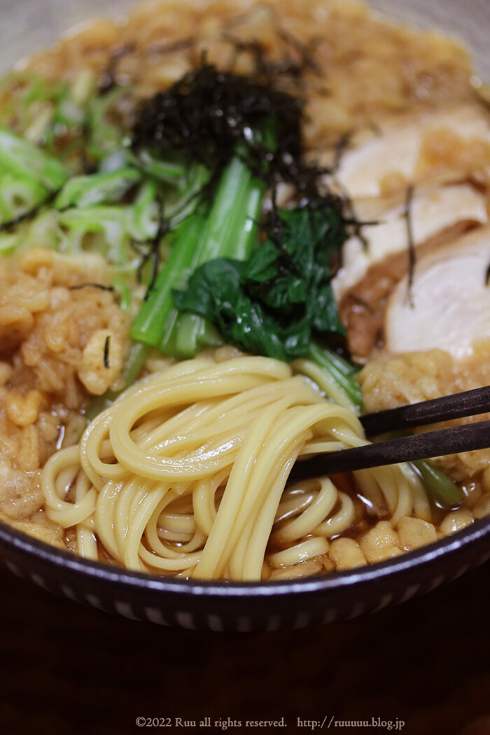 麺は乾麺なので、喉越しのよいツルツル麺。