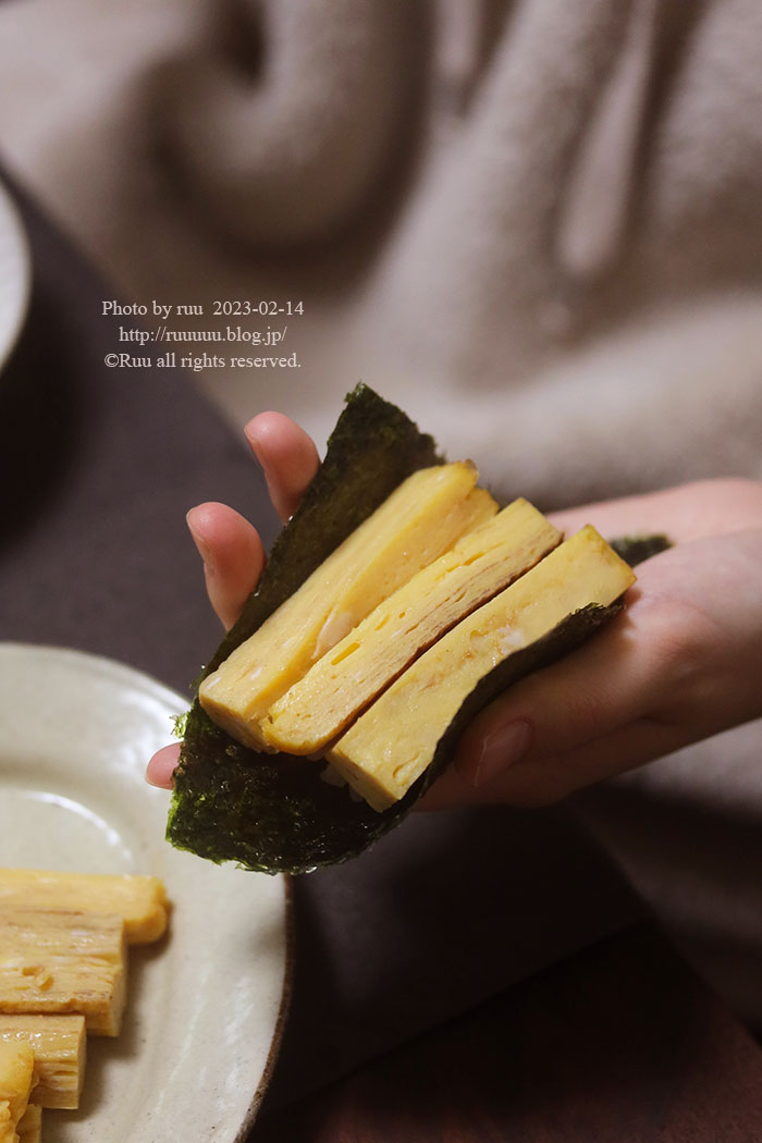そしてふと思いだしたように卵焼きをもう1本のせ「わぁ、できた。」と。