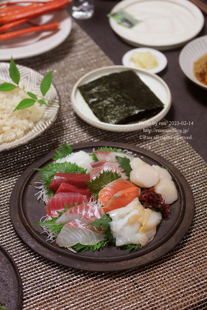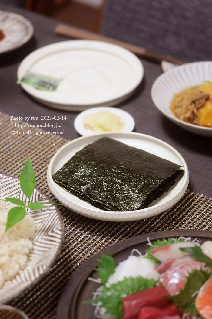 (あったかい部屋で)(←大事)手巻き寿司開始~。