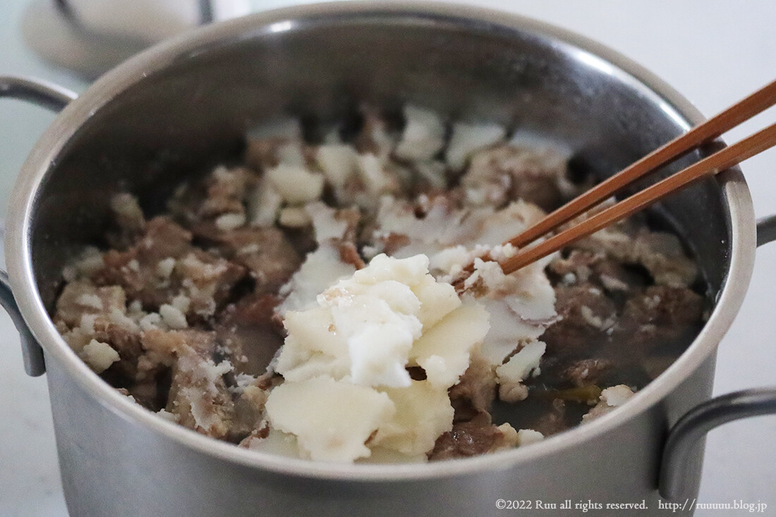 やっぱりちょっといい牛すじは、牛すじ本体の旨味が強く、臭みもなければやわらかくなるのも早い。
