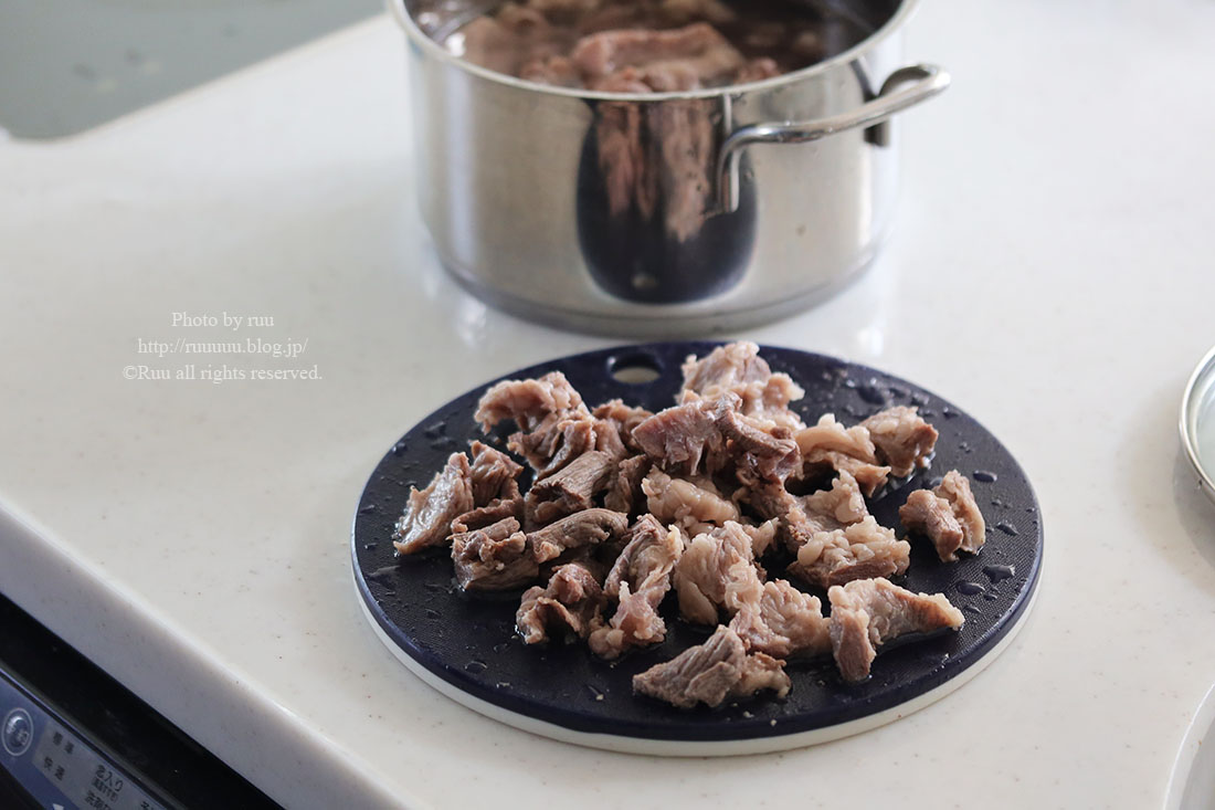 輸入牛の牛すじはなかなかやわらかくならないので、1時間以上煮てください。