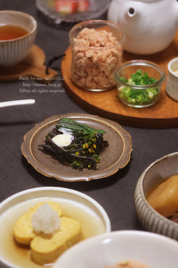 冷蔵庫にあった紅菜苔でおひたし。