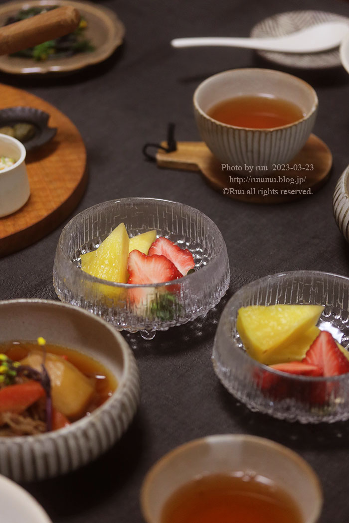 〆のデザートは、安定のパイナップルと越後姫。