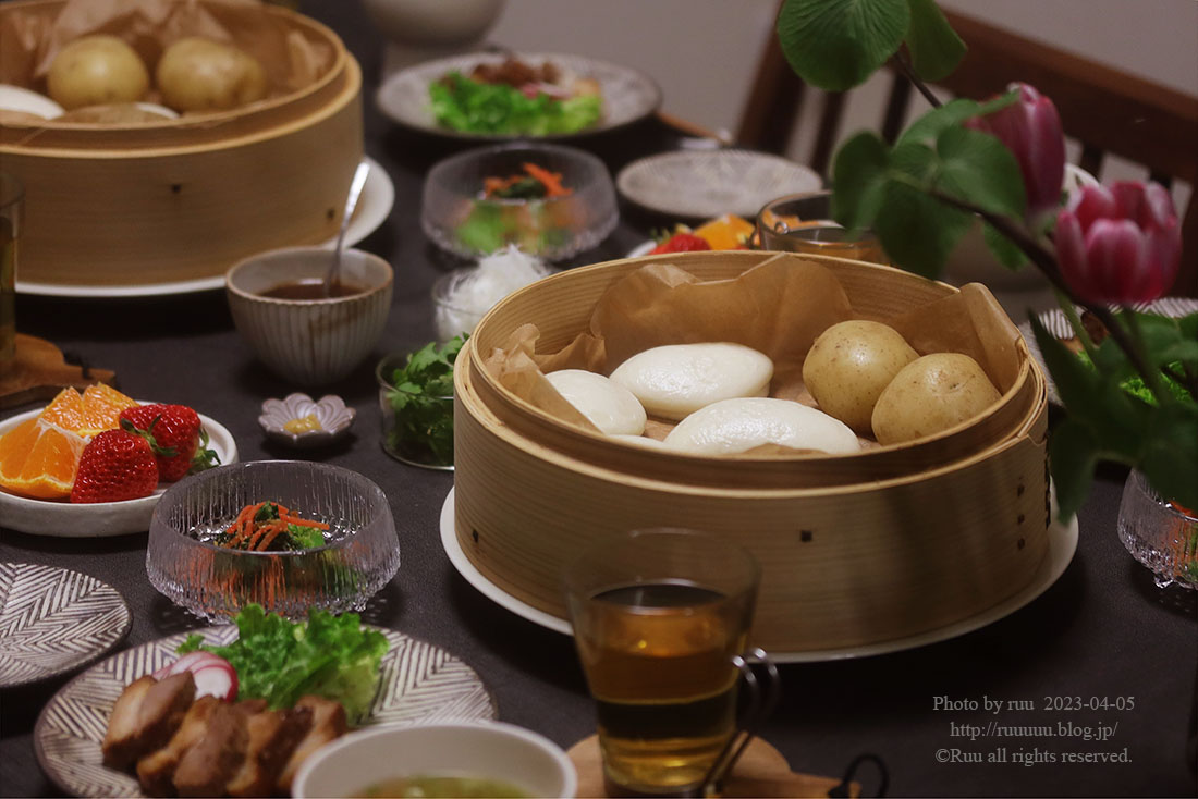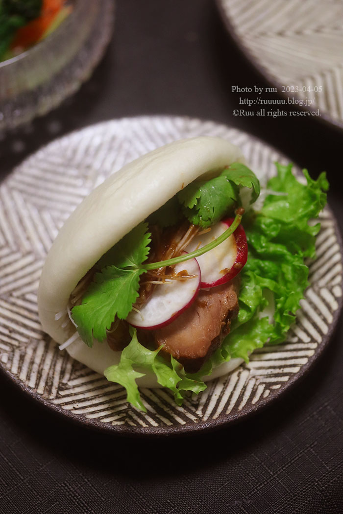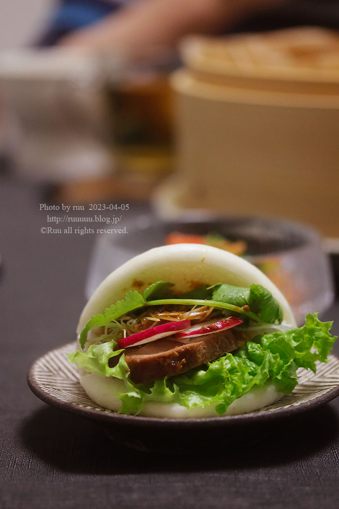 一言で言えば、具なしの中華まん的なもので、いろんな具を挟んで食べるやつ。