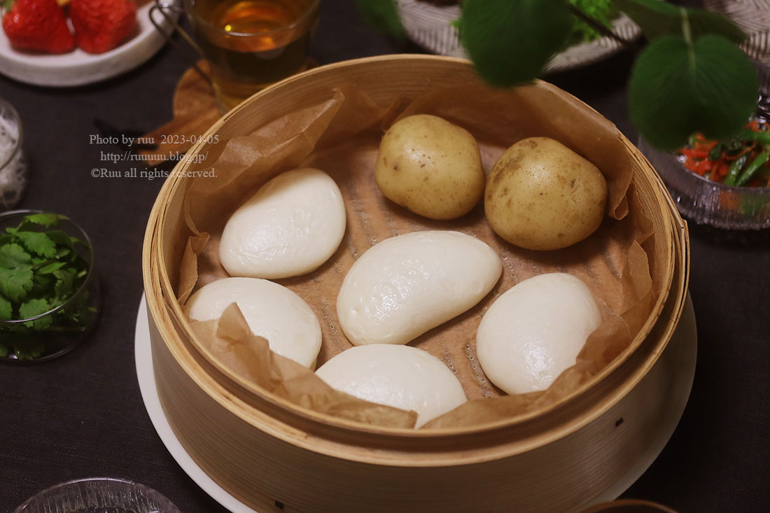 どうせ蒸篭を出動させるなら・・・と、新じゃがも共に蒸してたので、