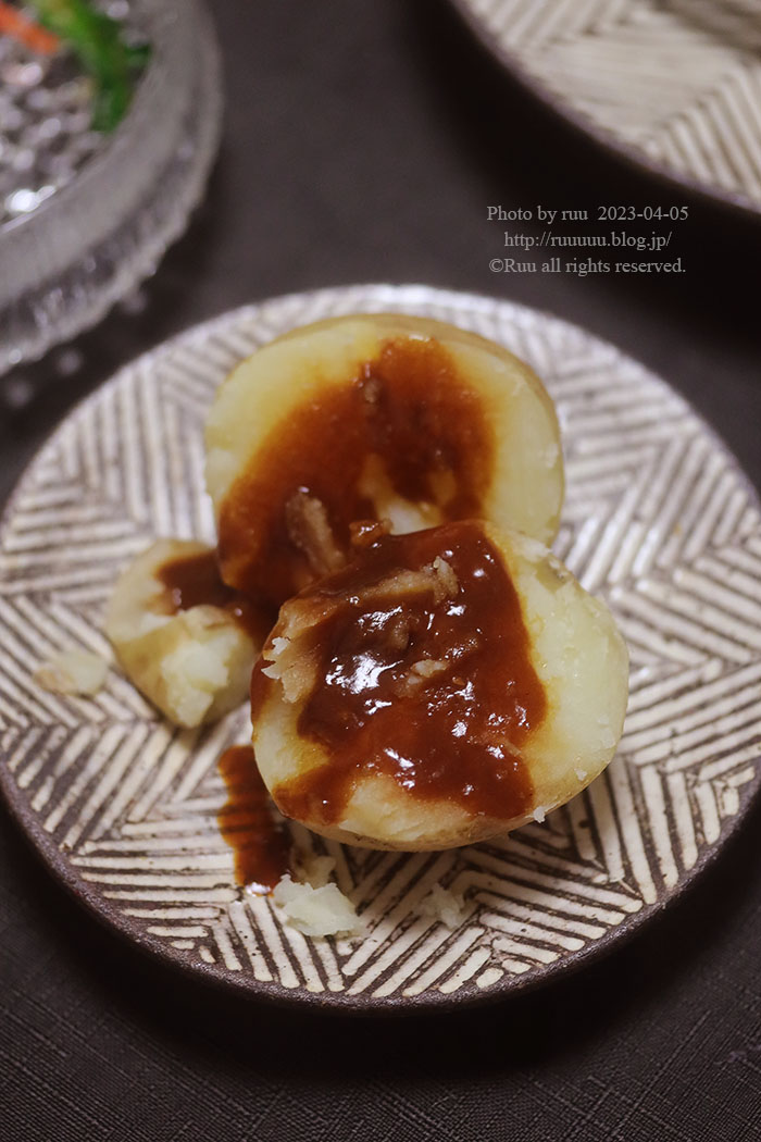 ほっくほくなおじゃがと味噌ダレ、運命の恋人かのようによく合う、合う。