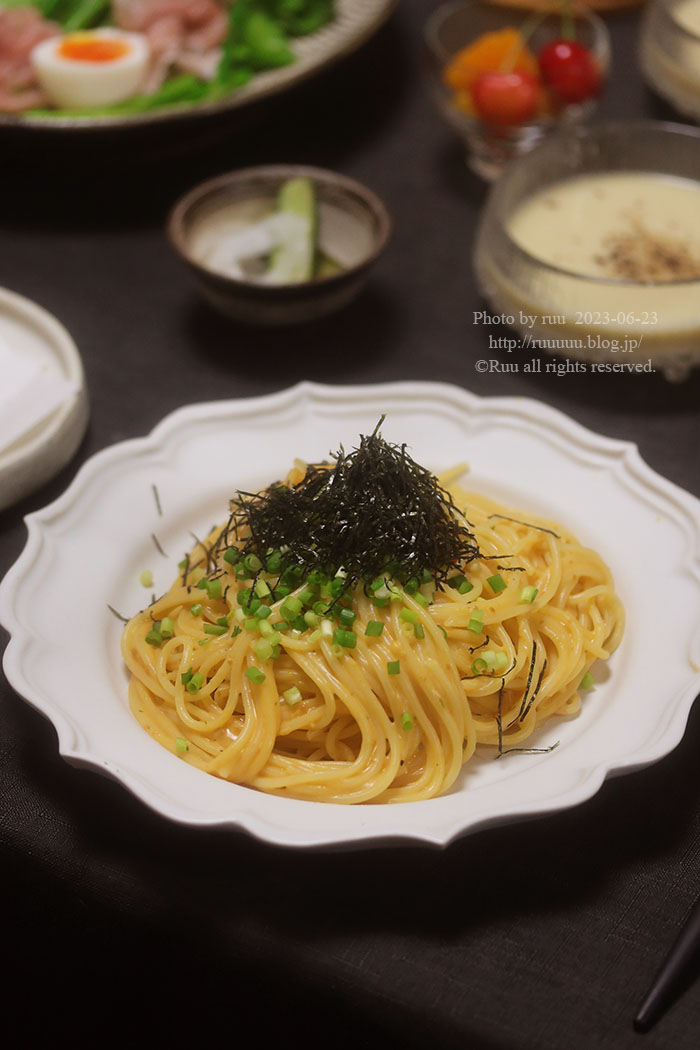パスタは一番娘のリクエストでうにクリーム。