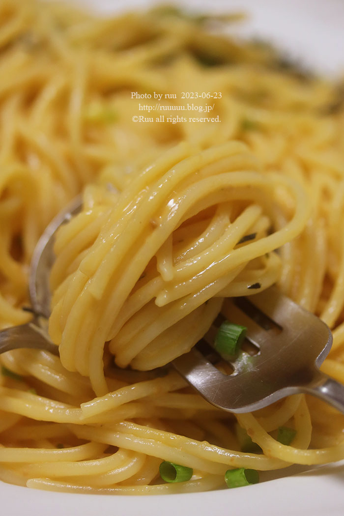 パスタソースは、ピルボックスさん(←コストコでバカ売れのオニオングラタンスープを作った会社)のフリーズドライ「うにクリーム」を使って、