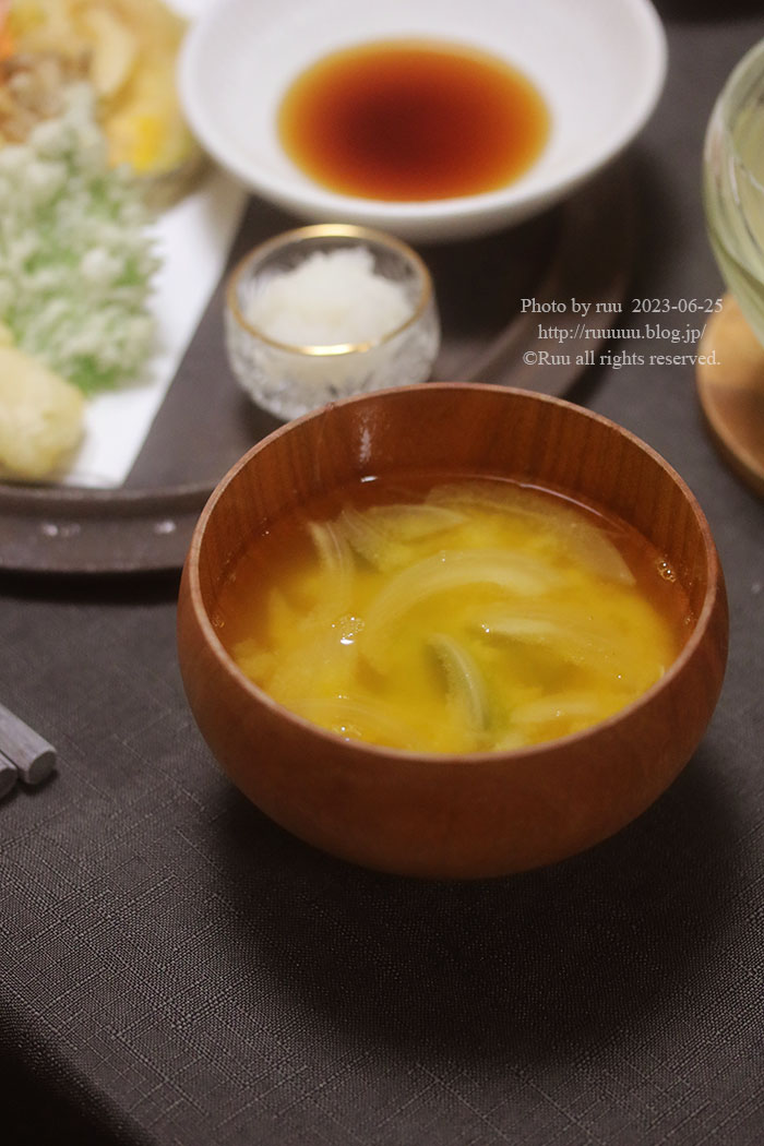 お味噌汁はこれまたおかんの好物、かぼちゃと新玉の味噌汁。