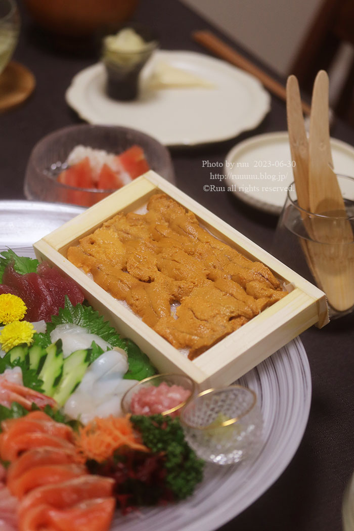 主役にふさわしい遠慮のなさでうにをとって巻き、