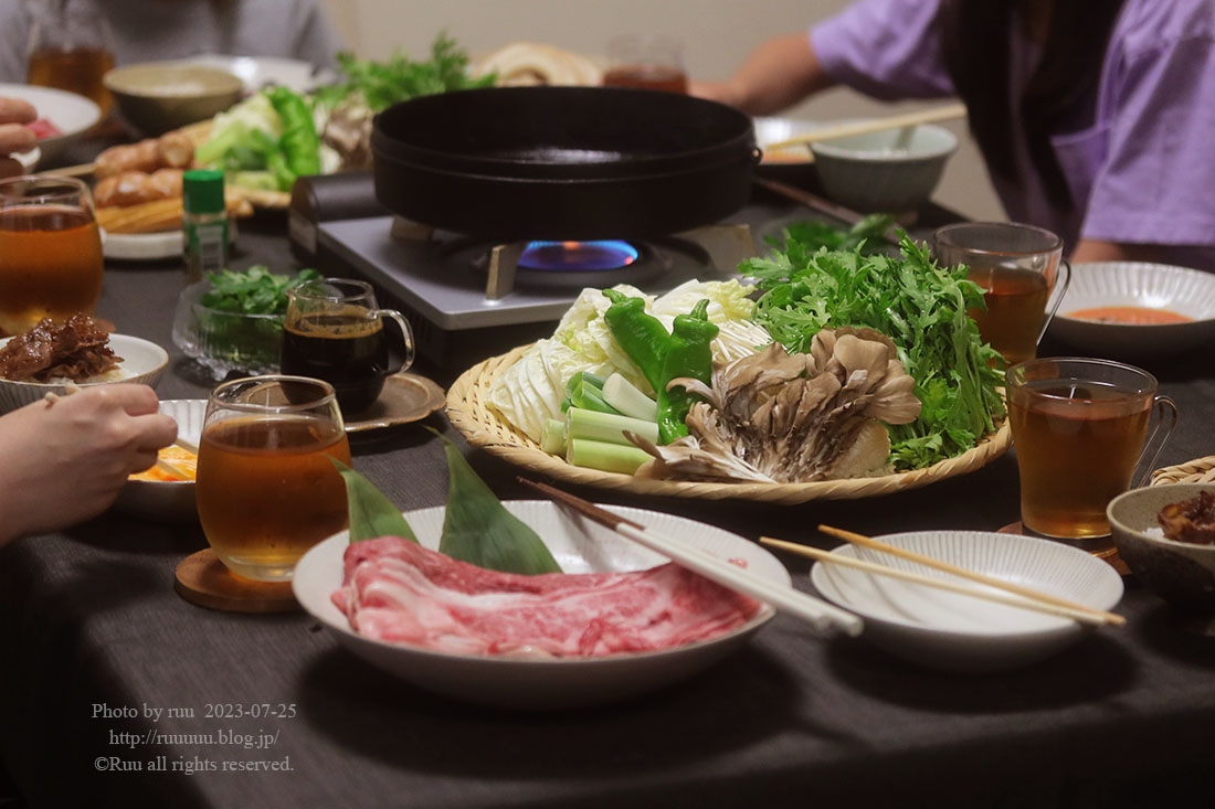 はい、チーム新潟+チームメキシコ、総勢6人(さぶろー山は不在)の大すき焼き大会~子供たちが元気で元気で~でございます。