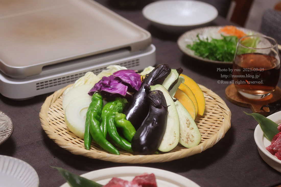 焼き野菜が意外に人気だったのは、多分、肉から出る脂が美味しいから。