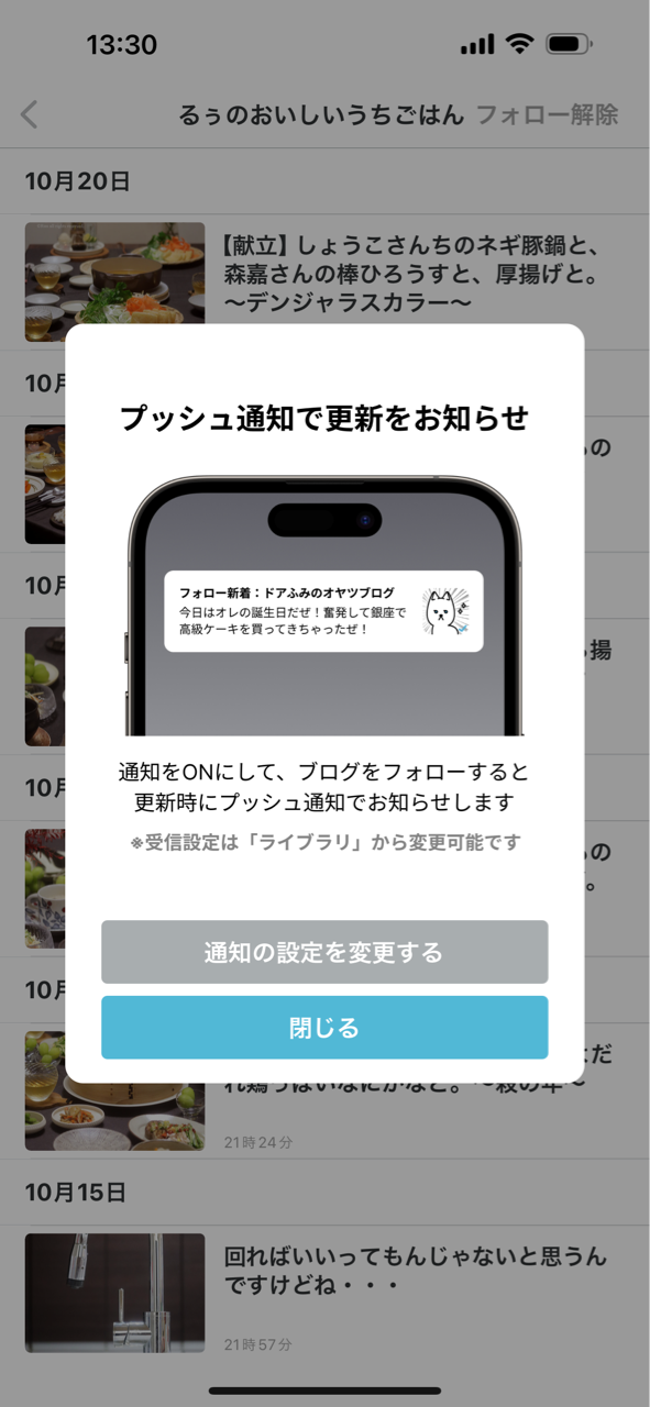 そしてフォローしたブログは「フォロー」のタブからいつでも見れます。