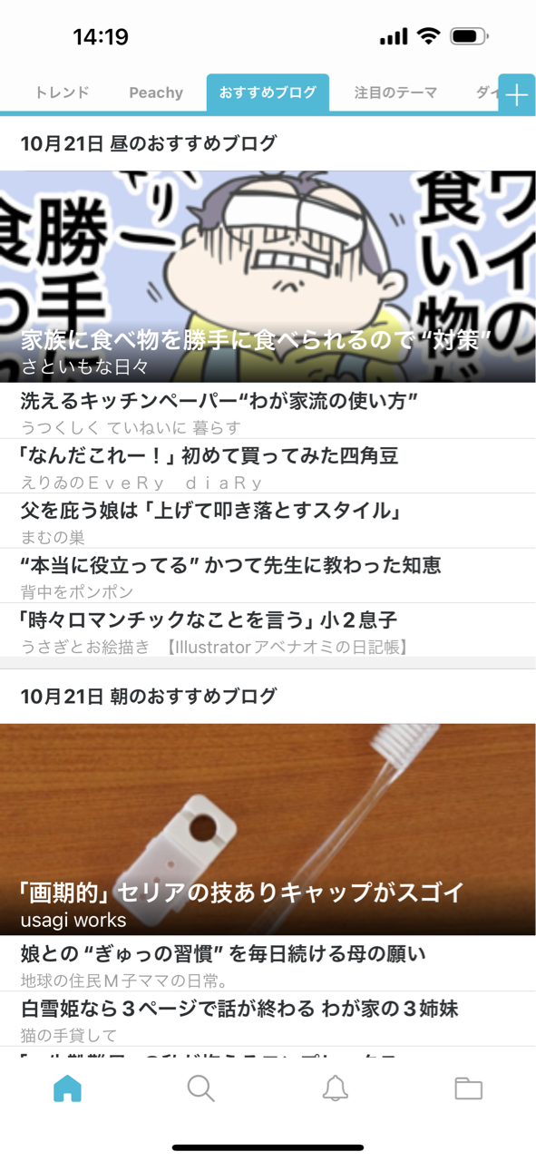 (おすすめブログのタブは、ニュースタブからずーーーーっと左にスクロールするとでてくるよ!)