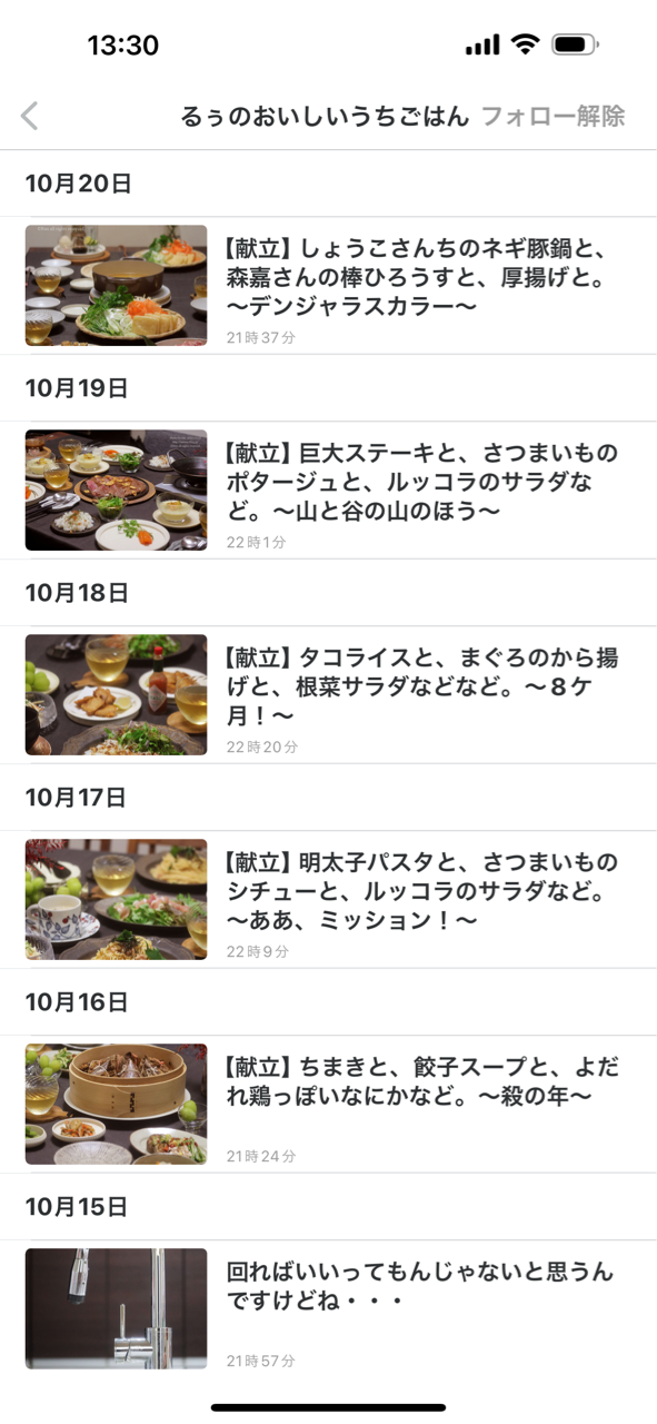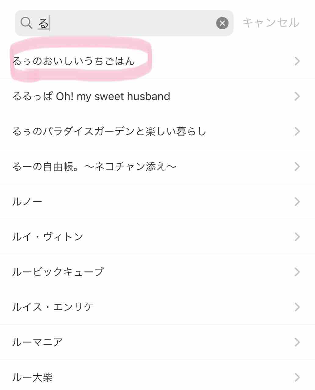 9:「る」からはじまるアレコレがでてくるので「るぅのおいしいうちごはん」をクリック。