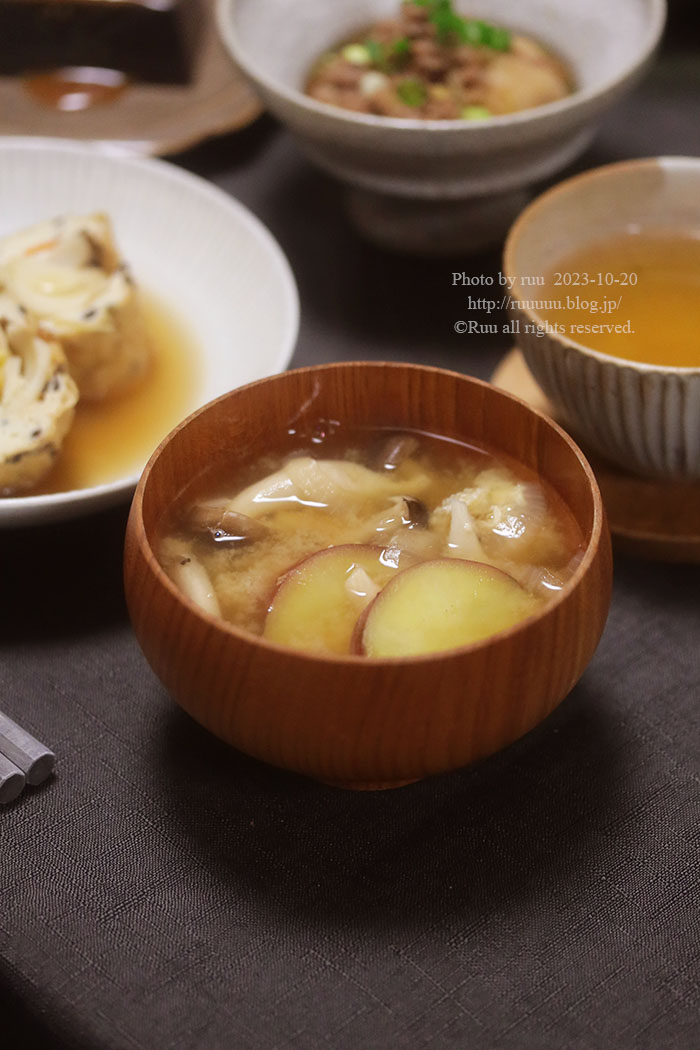 さらに味噌汁はさつまいもとたっぷりきのこの具沢山味噌汁で攻め、