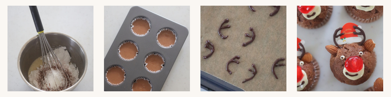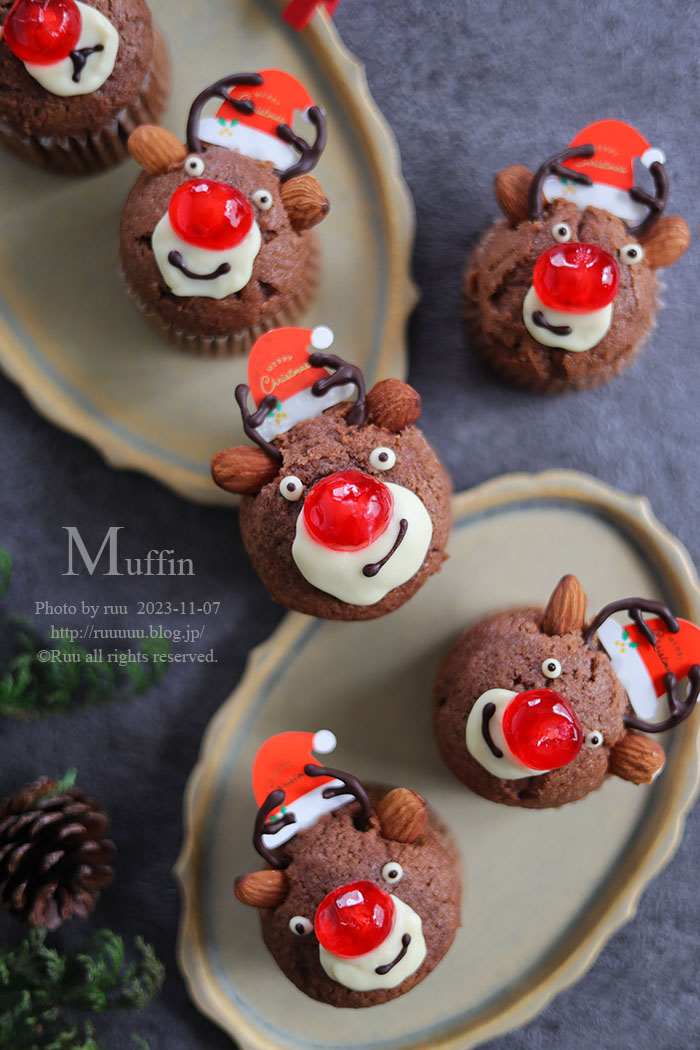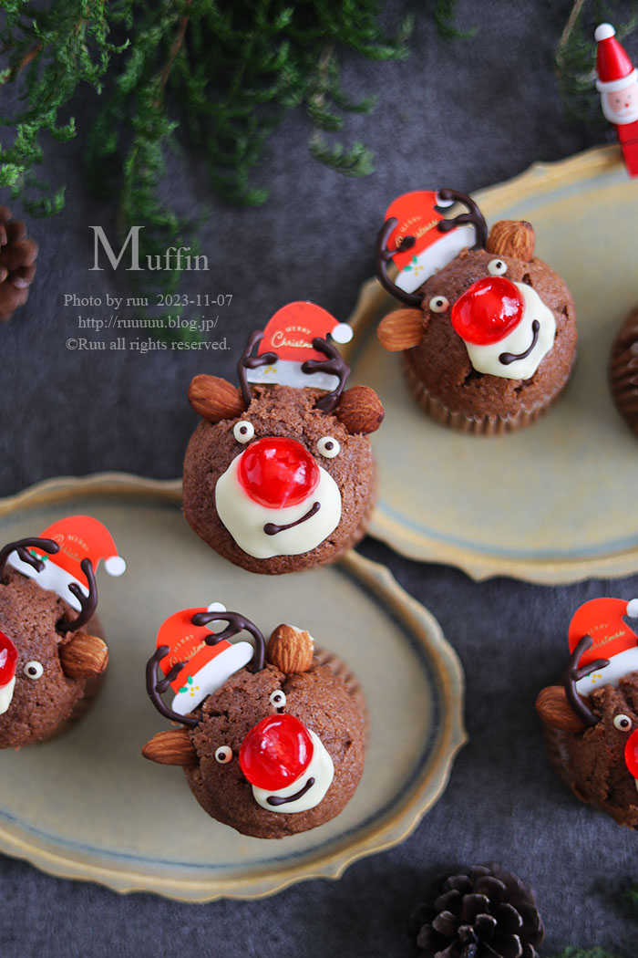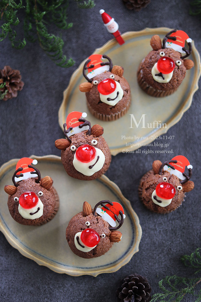 クリスマスのトナカイマフィン、レシピはこちらからご覧いただけます↓