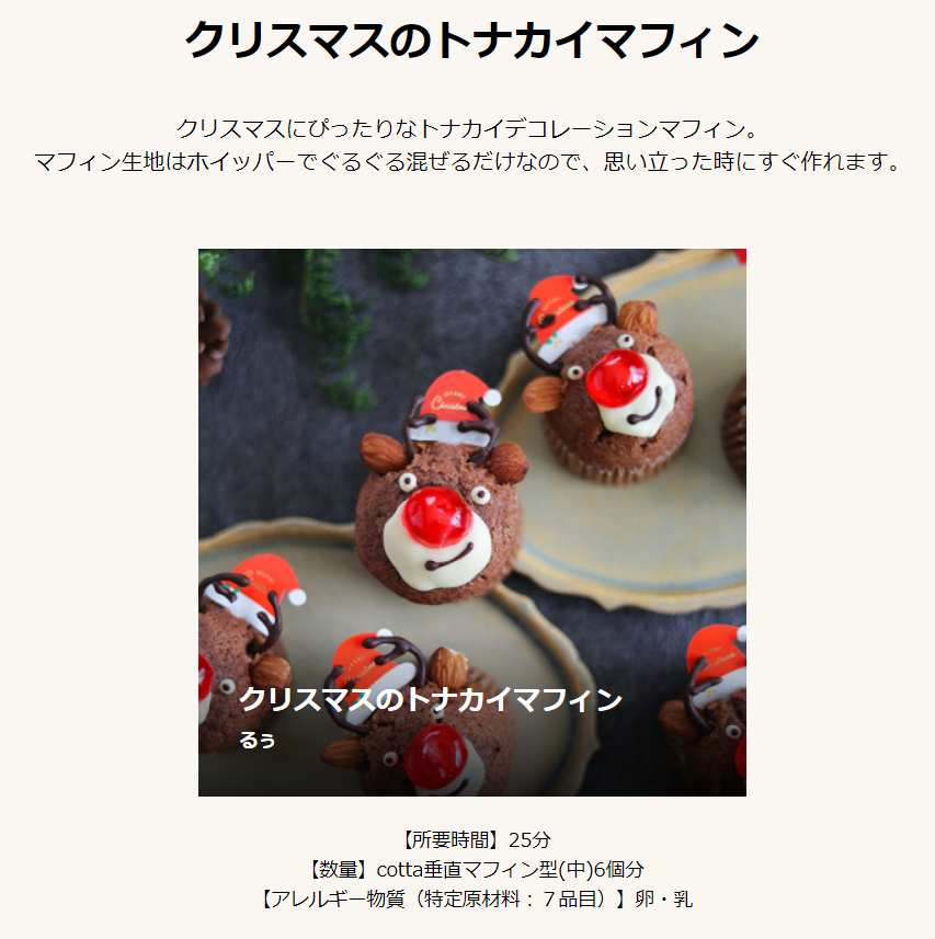 以上、cottaさんのお仕事でレシピ開発したトナカイマフィンとりんごのパウンドケーキでした!