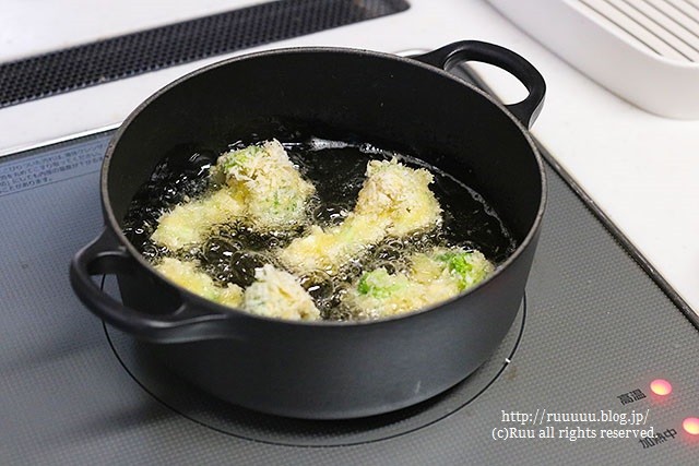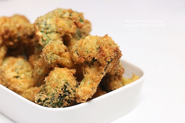 あんまり小さいと火の通りが早すぎてブロッコリーがしなっとしてしまうので、あたしはそこそこ大きいほうが美味しいと思う。(←ただ、大きいと若干揚げにくい)