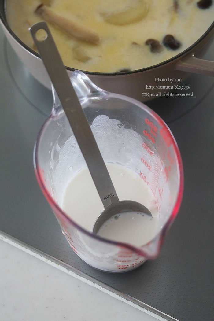 ほんっと適当に混ぜた米粉を入れるだけなので、ある種片栗粉感覚。