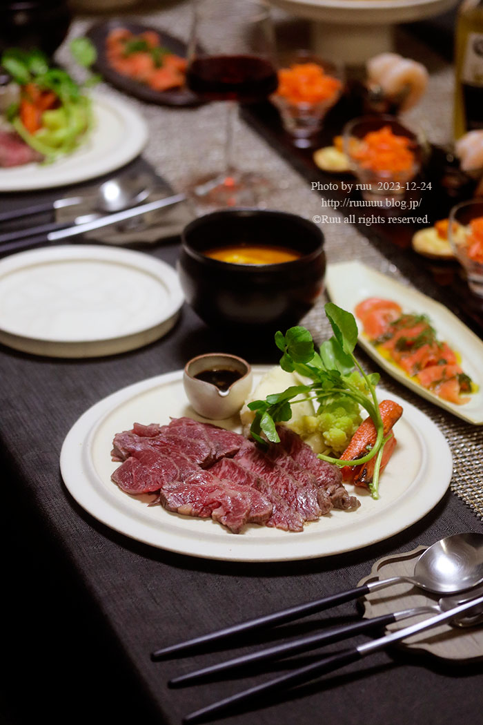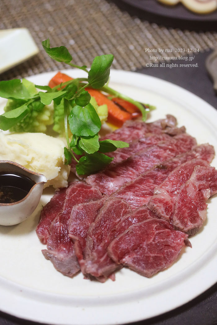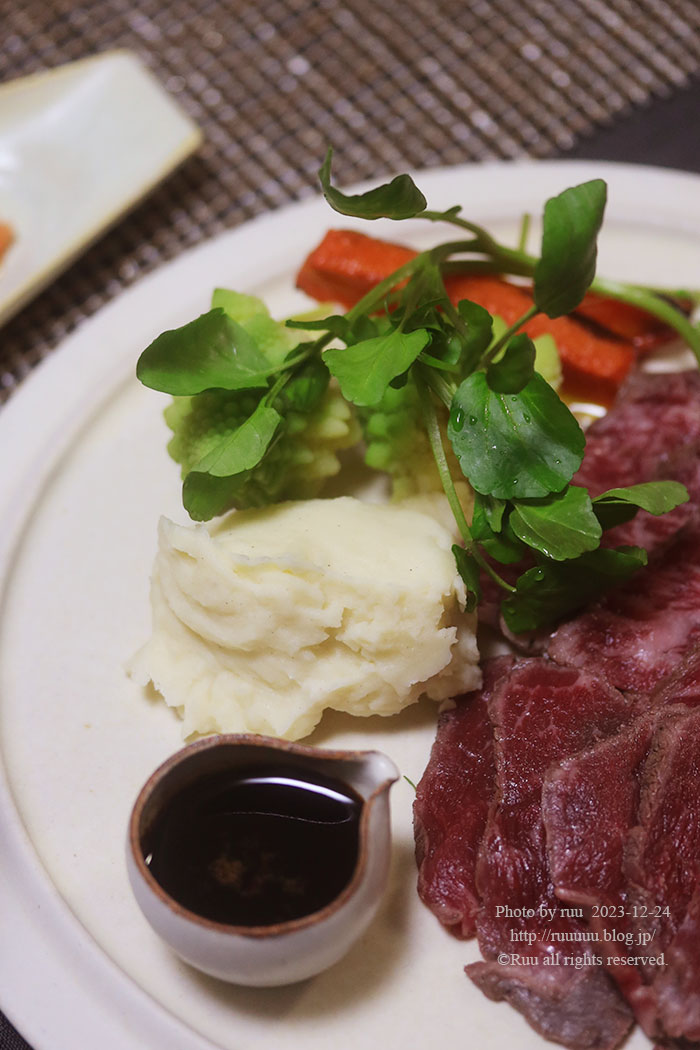 ローストビーフ マッシュポテトとロマネスコと焼き人参添えて