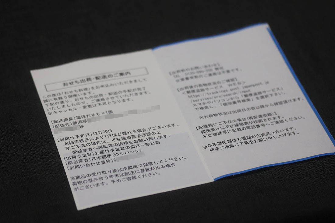 そう、福袋おせちの到着日は12/30(地域によっては12/31着の場合も)。