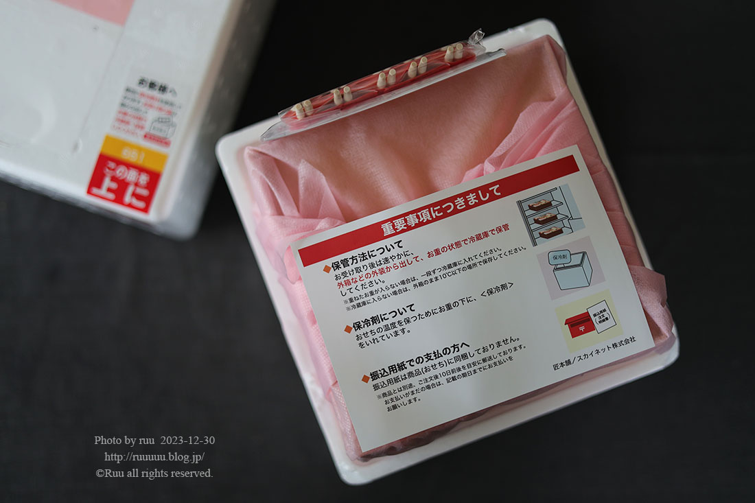 私「そうそう、どれが届くかまだ分かんないんだけど、今年は去年&一昨年みたいな三段重×2じゃないっぽいからさ。」