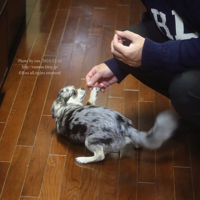 これは食卓のええ肉が欲しすぎて、お手とふせをいっぺんにキメるコイヌー↓