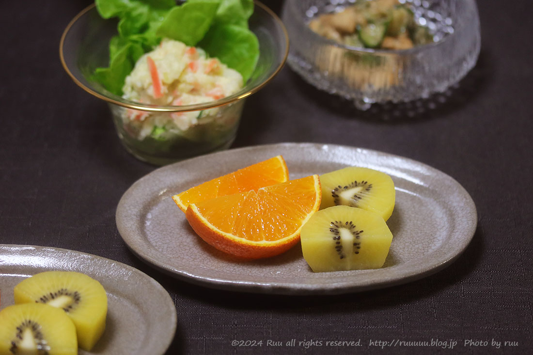 〆のデザートは、サンセレブと、おかんの友達が趣味で栽培してるキウイ。