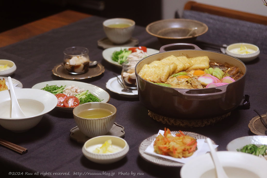 食卓には鍋ごとだして、各自取り分けスタイルで。