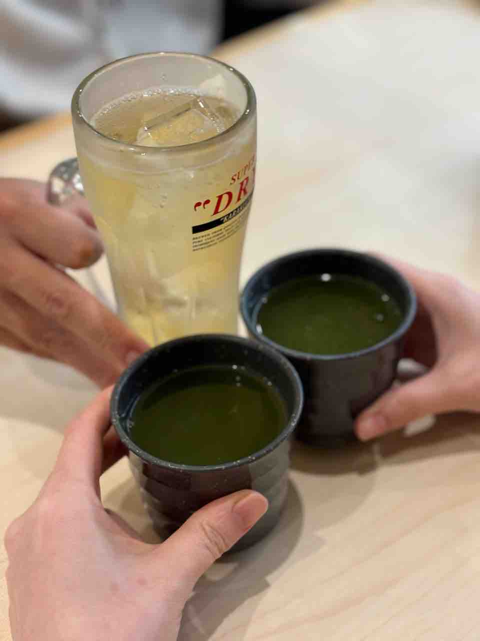 その後はま寿司行ってお茶とビールで祝杯をあげて、