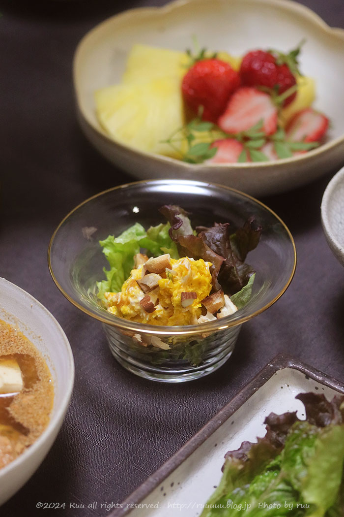 ほっくり滑らか~なサラダにナッツのカリカリ感が光るね~。