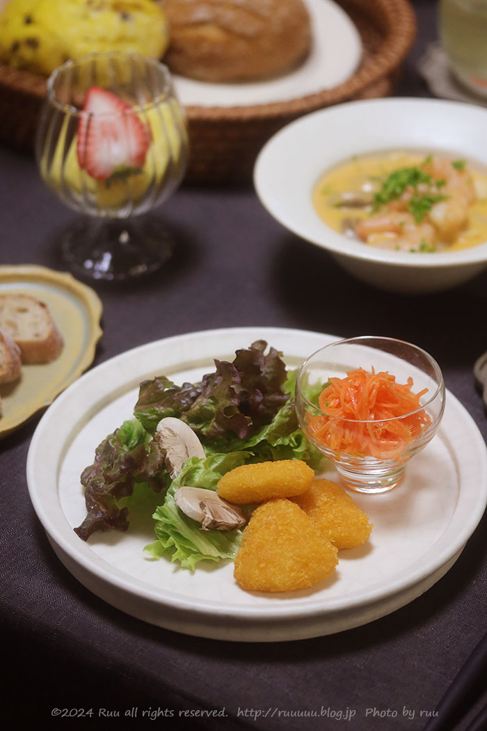 キャロットラペは作り置きのもので、カマンベールチーズフライはコープの。