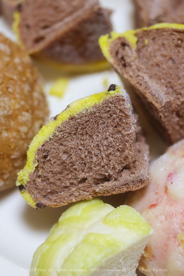 マスクメロンは、プレーン生地×メロン風味のクッキー生地。