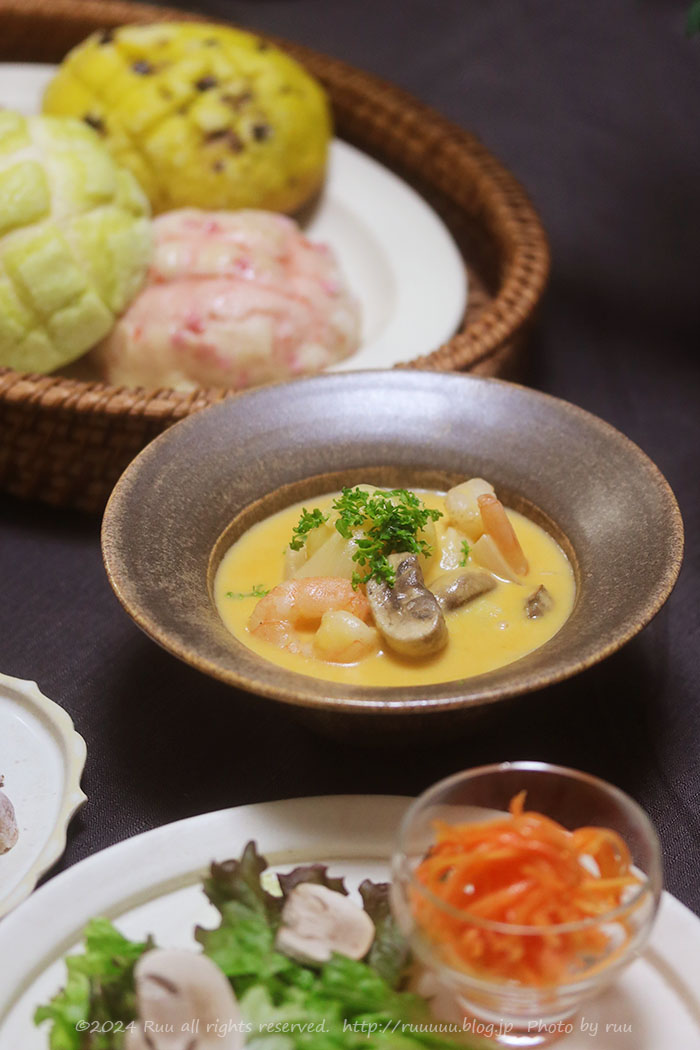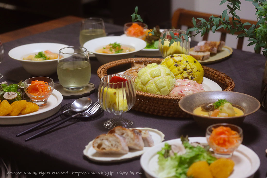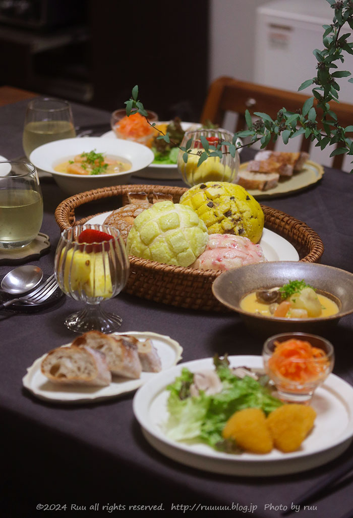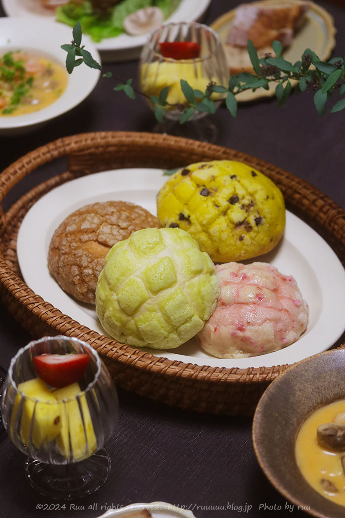 この日の晩ご飯は、色とりどり&味とりどりなメロンパン!
