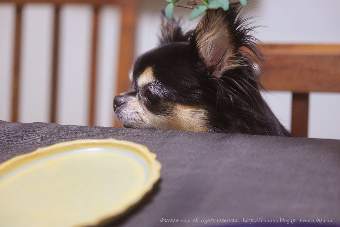 コイヌーは激しくおねだりしたいタイプなので、基本的には食事中ずっと走り回ってます。ずっと)