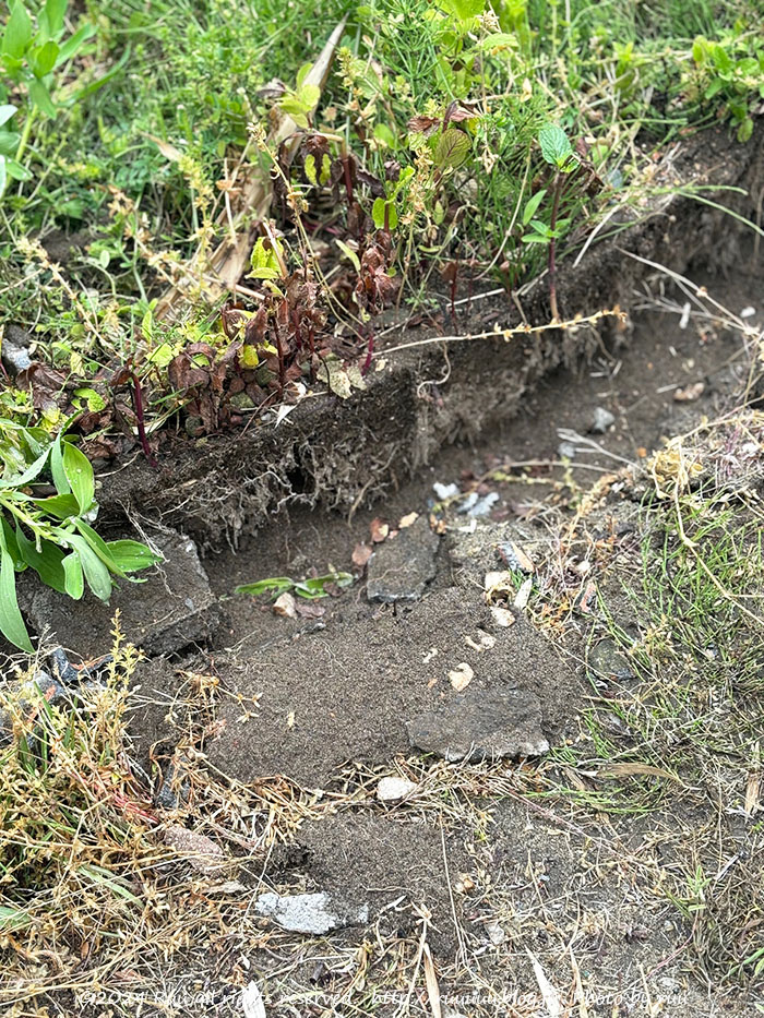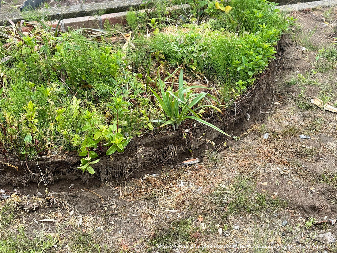 それでも、端っこはレンガを埋めて土止めにしてたり、
